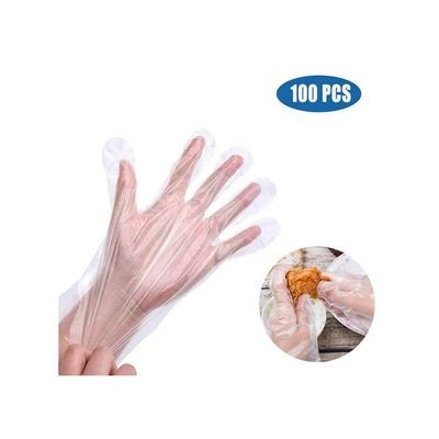 Pair Of 100 Disposable Transparent Food-Grade Gloves Clear