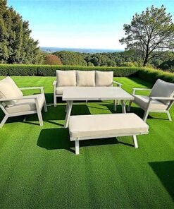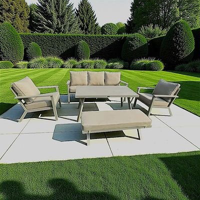 Premium 7-Seater Beige Outdoor Aluminium Sofa Set with Beige Cushions