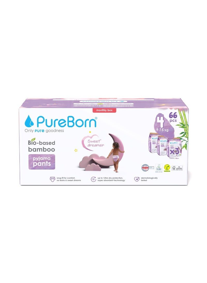 PureBorn Natural Bio-Based Baby Night Training Pyjama Pants Size 4 Cloud Print 3 x 22 Pants