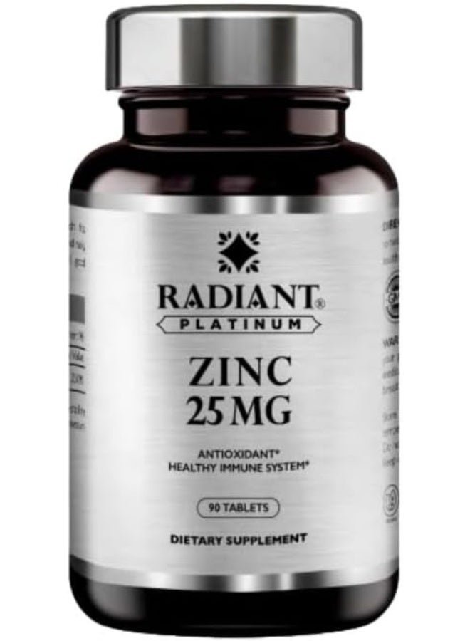 Radiant Platinum Zinc 25 Mg For Healthy Immune Function Antioxidant Support Maintains Healthy Hair, Skin And Nails Vegan Sugar Free 90 Tablets