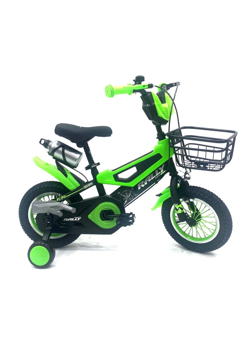 RALLY BICYCLE 12-Inch Kids Bike | 12-Inch Wheel Size | With Training Wheels | Ajustable Seat | With Water Bottle, Bell And Basket Chair Cover | Green Color
