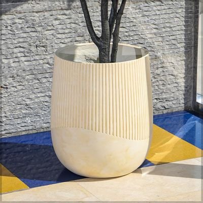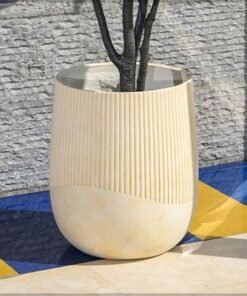 Ribbed Plant Pot, Durable Matte Finish Concrete Planter Pot with Drainage Hole, Lightweight & Weather-Resistant Flower Pot, Decorative Indoor & Outdoor Garden Pot for Home Office Decor (Large)
