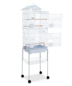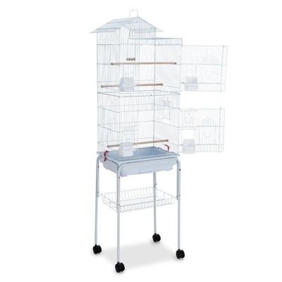 Roof Top Large Bird cage with Rolling Stand for Cockatiel Sun Conure Parakeet (White)