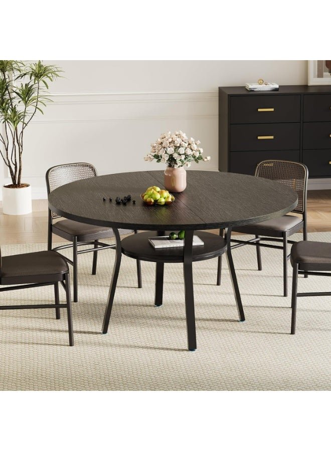 Round Dining Table for 4-6, 120cm Kitchen Table with Sturdy Metal Frame, Space Saving Circle Dining Room Table for Small Space (Table Only), Black
