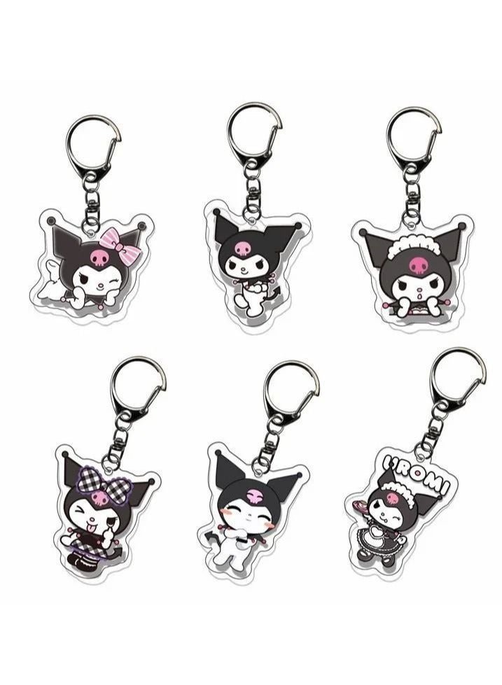 Sanrio 6pcs/set Cute Cartoon Kuromi Keychain Holder Key Chain Car Keyring Mobile Phone Bag Hanging Jewelry Kids Gifts Cinnamoroll Melody Pendant