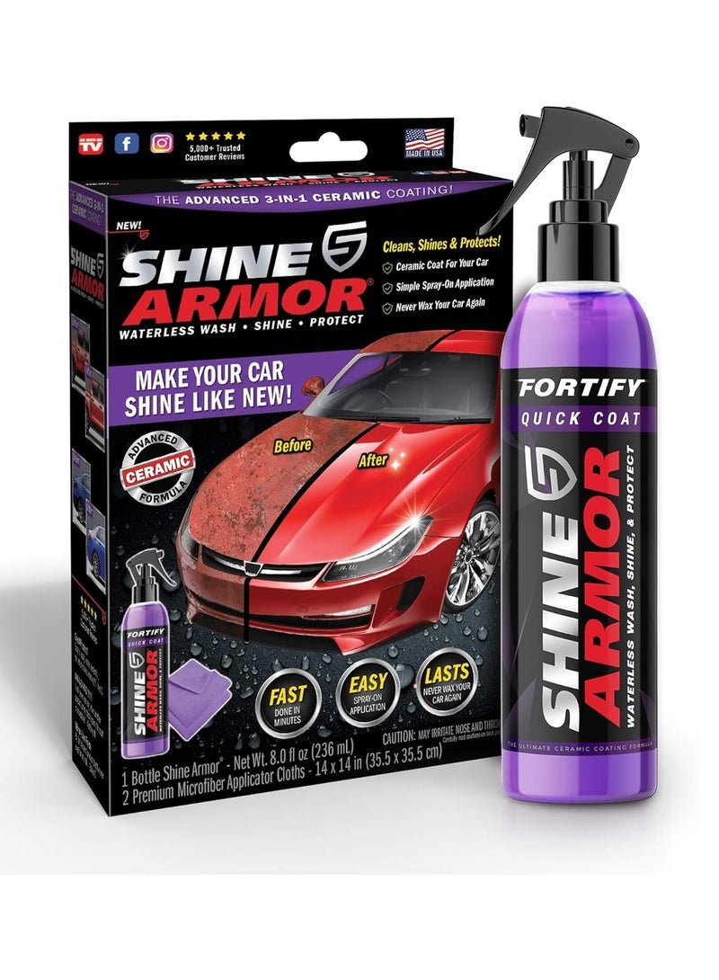 Shine Armor Fortify Quick Coat Ceramic Coating – Car Wax Spray – Waterless Car Wash & Wax – Hydrophobic Top Coat Polish & Polymer Paint Sealant Protection