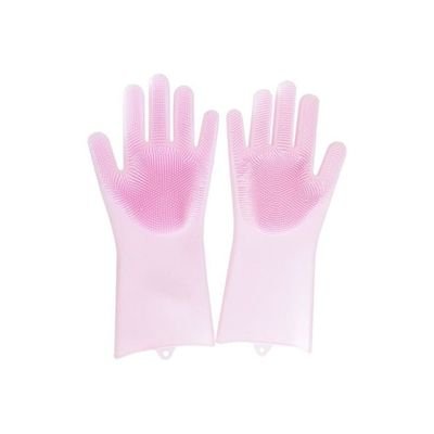 Silicone Cleaning Gloves Pink 14.06×6.50inch