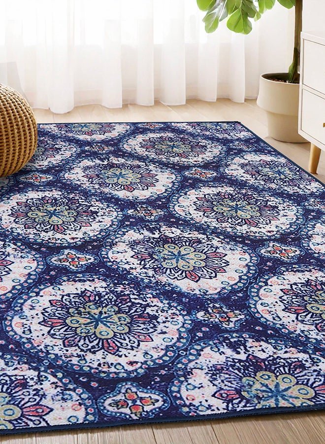 Status Contract 3D Printed Rug for Living Area, Bedroom & Dining Space | Anti-Slip Floor Rug | Kashmiri Blue | Polyester | 121 x 182 cm