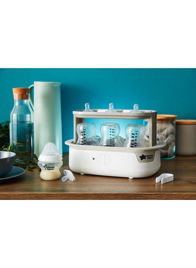 tommee tippee Advanced Steam Electric Steriliser For Baby Bottles, Kills Viruses And 99.9% Of Bacteria, 5-Minute Sterilisation Cycle, White