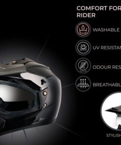 Vega Off Road ISI Certified Gloss Finish Full Face Dual Visor with Peak Helmet for Men and Women Outer Clear Visor and Inner Smoke Sun Visor(Black, Size:L)