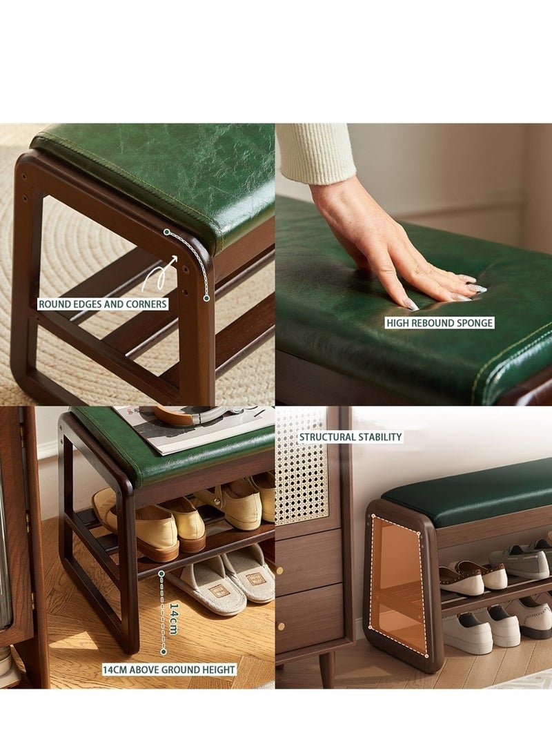 Wooden Shoe Bench, Modern Shoe Cabinet with Storage and Leather Cushion Seat for Shoe Changing and Shoe Organizer, For Home Entryway Hallway Bedroom Living Room, (Green 100cm)