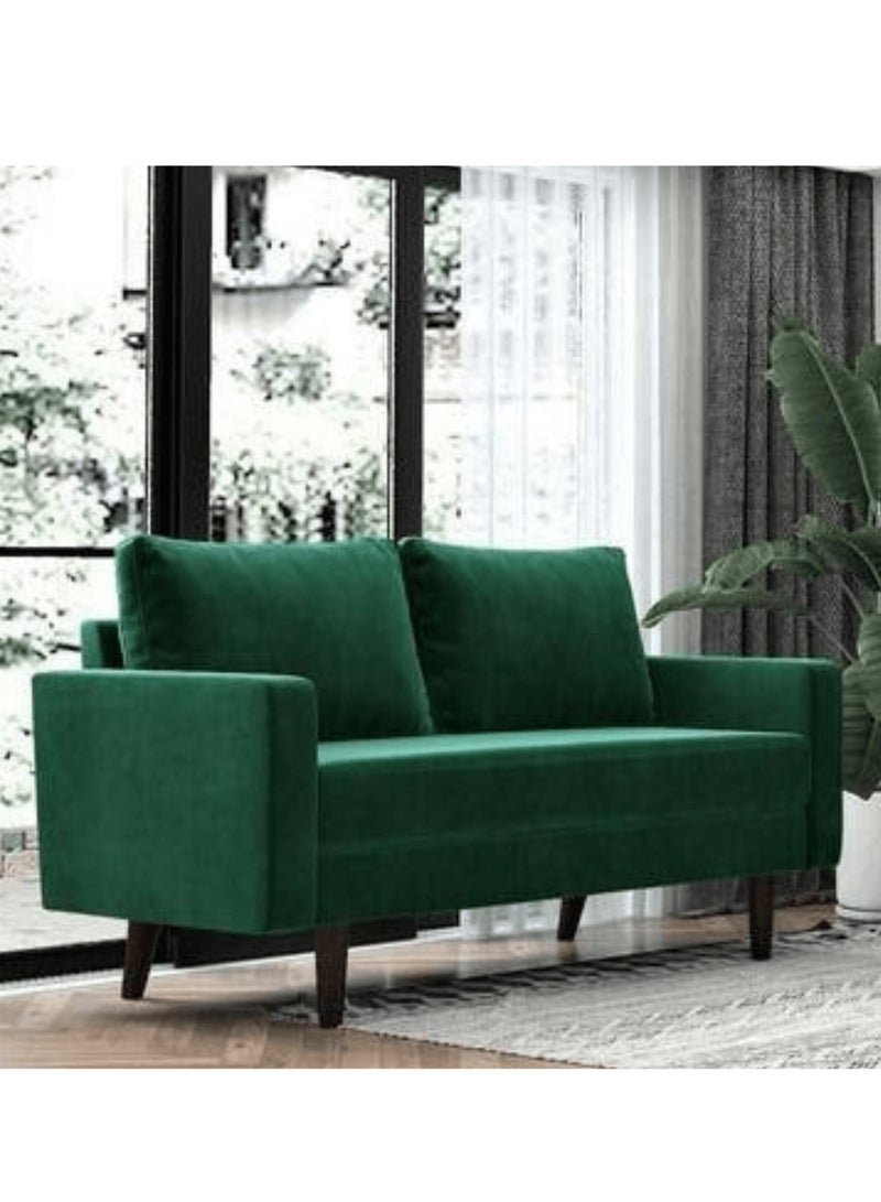 Wooden Twist Designer Handmade Velvet Fabric Solid Wood Soft & Comfortable 2 Seater Sofa ( Green )