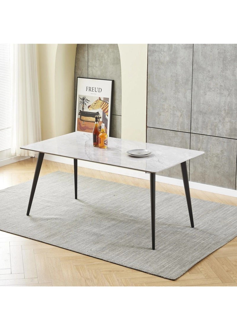 Wooden Twist Modern Rectangular Kitchen Dining Table: Sintered Stone Marble Effect Top With Sleek Tapered Metal Legs – Ideal Breakfast Table For Dining