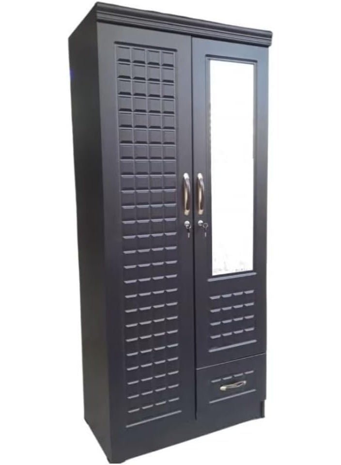 Zamart Home Furniture 2-Door Wooden Wardrobe with Mirror & Lockable Drawer – Engineered Wood Bedroom Almirah with Shelves & Secure Lock System (Without Installation), Wenge